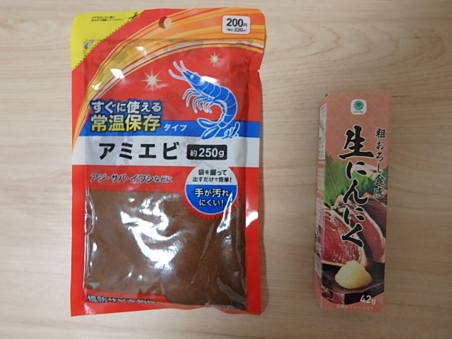 「ダイソーアミエビ」と「お好み焼き粉」または「たこ焼き粉」です。どちらもダイソーで購入できますので、セットで購入することをおすすめします!両方を購入しても税込み330円です。