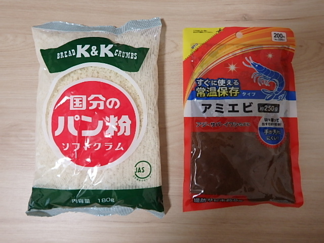 これは最強かつ、定番のアレンジで一番おすすめの工夫です。ダイソーの食品コーナーにもパン粉は売っていますので、アミエビと一緒に購入することをおすすめします。