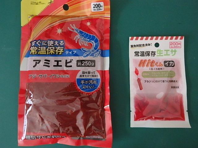 釣具店が閉まっている時や、エサが足りなくなった時のために、常温で持ち運べるエサを常備しておくと便利です。