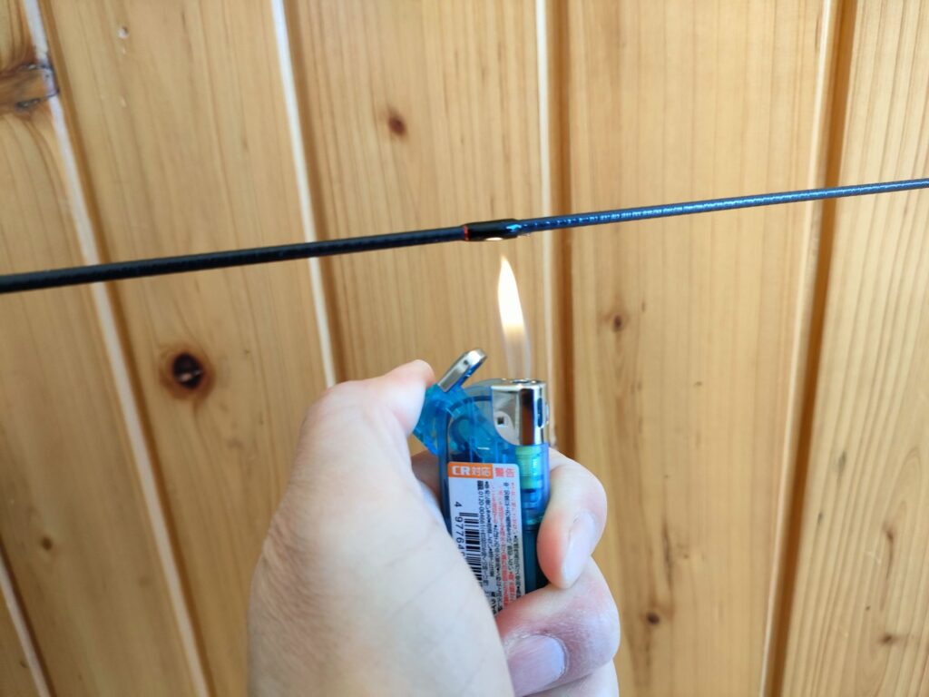 炙りすぎると竿本体を痛めるので、サッと数秒当てる程度にするのがコツです。